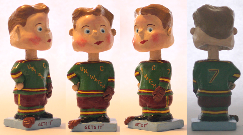 Am sculptat statueta cu jucator de baseball ca un heruvim foarte traditional. De asemenea, statueta cu jucator de hochei reprezinta o persoana plinuta si cu fata voioasa, cu exceptia faptului ca are o manusa cazuta si este gata de lupta. Iar versiunea cu jucatorul de fotbal are putina duritate, asemenea lui Gino Marchetti. Toate trei s-au bazat in mod vag pe oameni din trecutul meu. Oricum, acum avem sculpturile noastre si timpul pentru a le transforma in statuete. (Prima statueta, 11 ore; urmatoarele doua, cate 5 ore fiecare.)