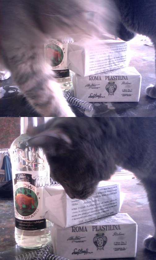 Pasul 1 – Sculptura: Intre a crea o statueta si a crea o sculptura care, in fond, va fi un model din metal, nu este nicio diferenta reala. Sunt multe metode de a indeplini sarcina, iar aceasta este una din ele. Incepem prin a ne procura cele necesare. Compozitia pentru modelare, care are la baza ulei, disponibil la orice depozit de aprovizionare cu obiecte de arta, este buna pentru ca nu se usuca niciodata si este foarte maleabila, in timp ce vodca poloneza cu iarba de bizon iti este de ajutor atunci este nevoie sa tragi una dupa ceafa pisicilor care se baga incontinuu in pozele pe care incerci sa le faci. (investitie: 20 $ / 2 ore + vodca)